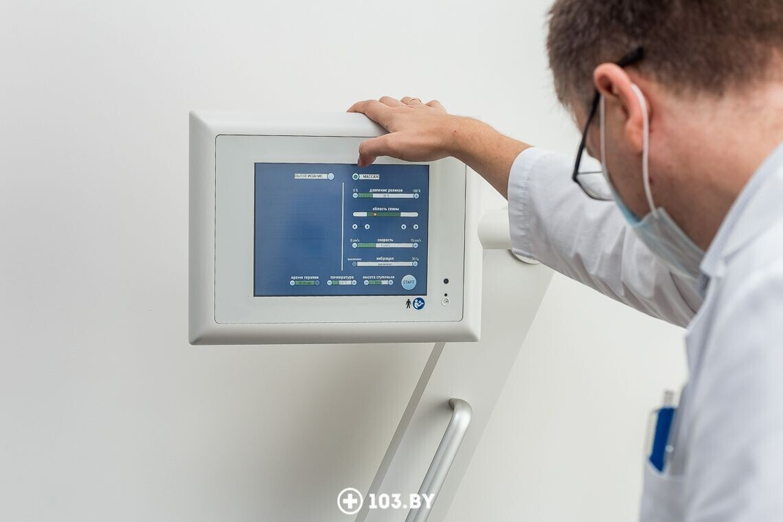 - С помощью компьютерной программы выбирается режим вытяжения и его параметры (сила и длительность, с массажем или без и т.д.) и начинается процедура.