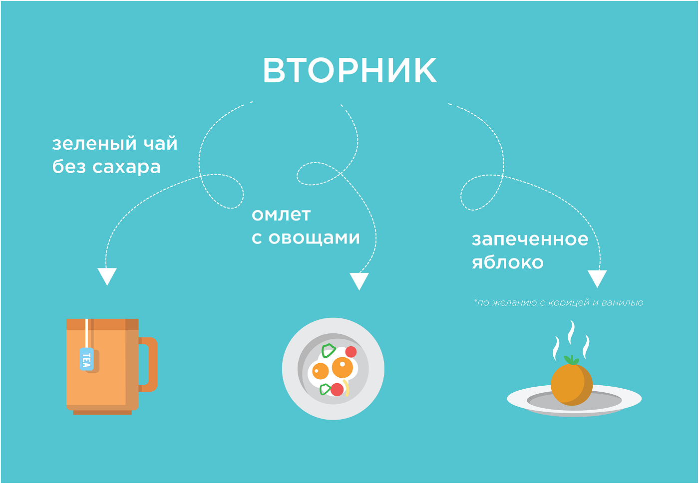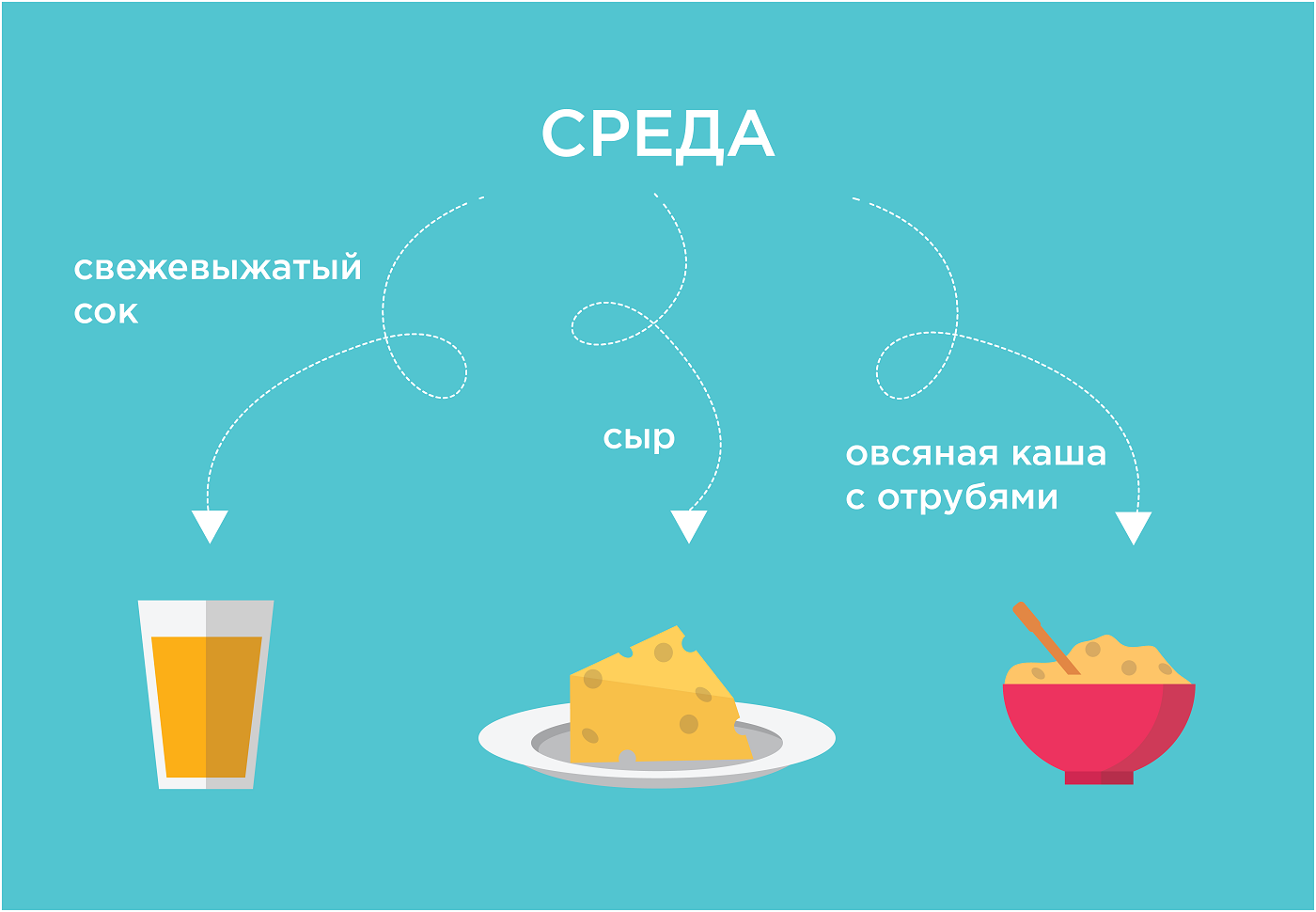 — В него должны входить белковые продукты (отварное яйцо либо омлет, творог, каши с добавлением фруктов или отрубей), желателен горячий напиток (например, зеленый чай без сахара, кофеманам лучше перейти на цикорий), советую съедать утром и кусочек сыра для поступления кальция.