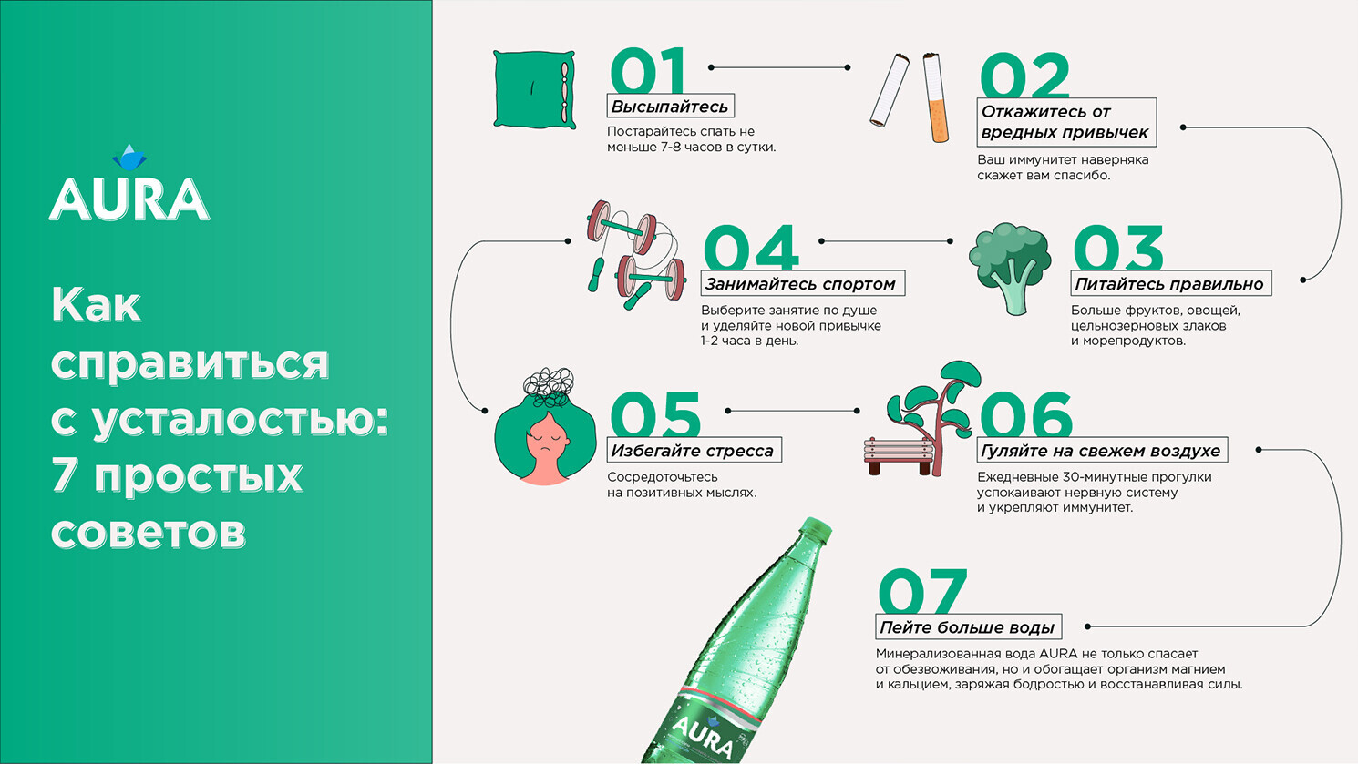 Минерализованная вода AURA — природный источник энергии и полезных элементов для полноценной активной жизни. Ее можно пить на работе, чтобы сохранять заряд бодрости в течение дня, после занятий в тренажерном зале, чтобы утолить жажду и быстрее восстановить силы, или с любым приемом пищи, чтобы сделать его еще полезнее.