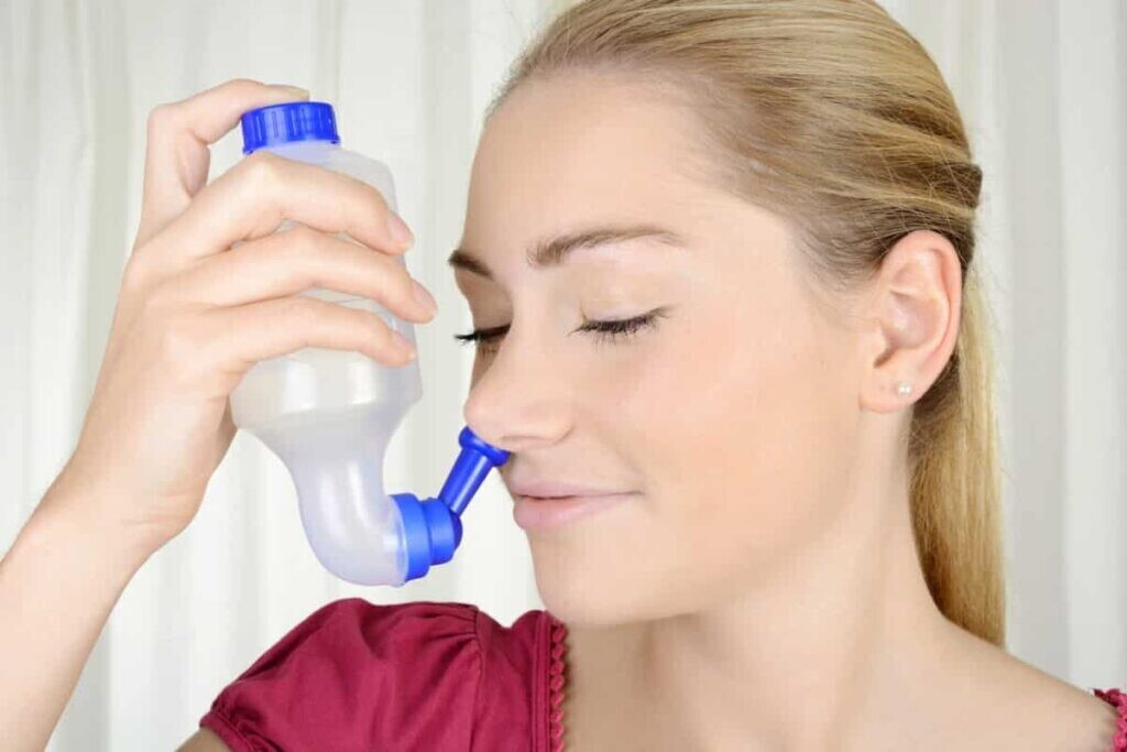 Приготовив раствор, необходимо охладить его до комнатной температуры и перелить в устройство для промывания. После этого следует взять емкость с лекарственным средством в руку, наклониться над раковиной, ванной или тазом, открыть рот, приложить носик устройства к ноздре и начать медленно заливать в нее раствор так, чтобы он равномерно вытекал из второй ноздри. Аналогичную процедуру необходимо провести и с другой ноздрей. Завершив промывание, следует высморкать остатки жидкости из полости носа.