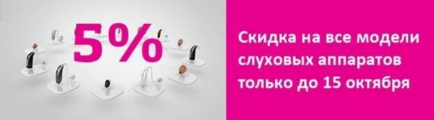 Внимание! Только до 15 октября 2014 года в Центре хорошего слуха по адресу ул. Воронянского/Авакяна, 19 на все модели слуховых аппаратов действует скидка 5% для тех, кто записался через наш сайт www.sluh.by