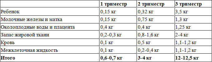 В первые месяцы мама и малыш только начинают приспосабливаться друг к другу, поэтому женщина в весе чаще всего не прибавляет — скорее наоборот: в это время ее может беспокоить токсикоз, что приводит к потере нескольких килограммов. Максимум в конце триместра беременная может набрать 1-2 кг.