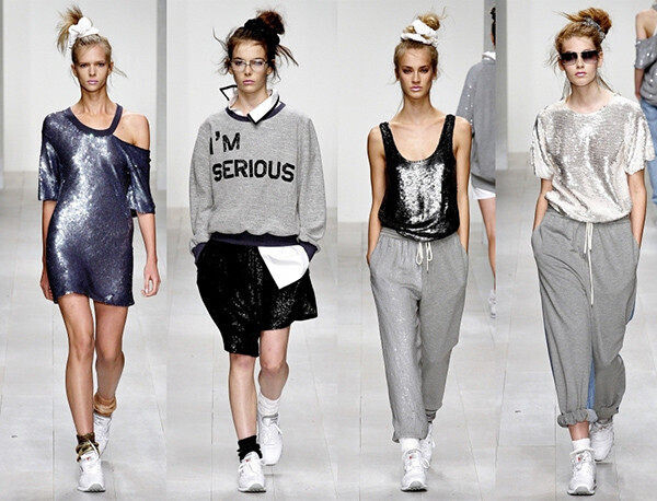 Новый спортивный стиль отличает подчеркнутая женственность. Спортивные элементы часто сочетаются с чисто декоративными вставками шелка, кружев, вязки. Принты с морской тематикой, раскрепощенный или, наоборот, жесткий графичный силуэт брюк, юбок, курток дает пространство для комбинирования деталей.