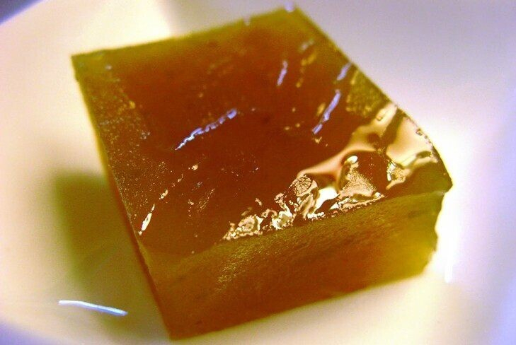 8. Желе. Замочите в воде 6 г желатина, соедините с 500 г свежевыжатого сока любых фруктов или ягод, доведенного почти до кипения, разлейте по креманкам и дайте застыть в холодильнике. Домашнее желе можно сделать слоеным: особенно эффектно смотрятся поочередные слои с кусочками фруктов, на молоке и т. д.