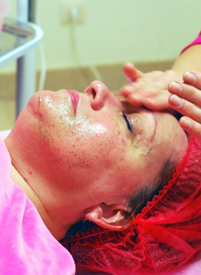 Первый этап – очищение кожи. Для кого-то это просто снятие макияжа, для других – полноценная чистка лица, применение скрабов, обработка кожи обеззараживающим раствором хлоргексидина. Все очень индивидуально и зависит от состояния кожи, а косметологи непременно порекомендуют любой клиентке самый подходящий именно для нее вариант.