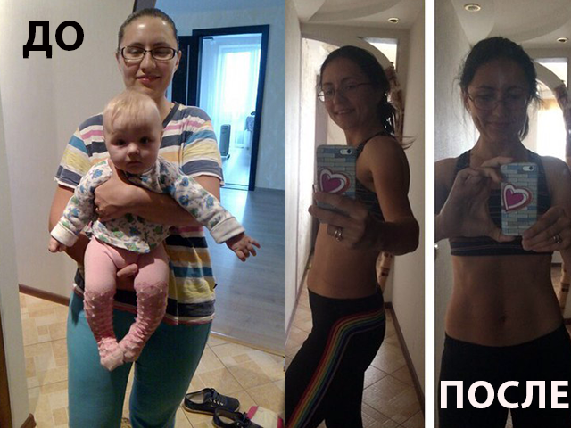 Дома Мария продолжала заниматься по программам из YouTube, делала упражнения на пресс и ухаживала за кожей с помощью обертываний и массажа вакуумными баночками. Постепенно молодая мама начала питаться уже не дробно, а просто правильно. Спустя полгода ей захотелось убрать еще 5 кг. С поставленной целью девушка справилась за 2 месяца. По ее словам, помогли сессия и опять же дробное питание. Когда ребенку был год и 8 месяцев, молодая мама перестала кормить грудью и похудела еще на 3 кг.