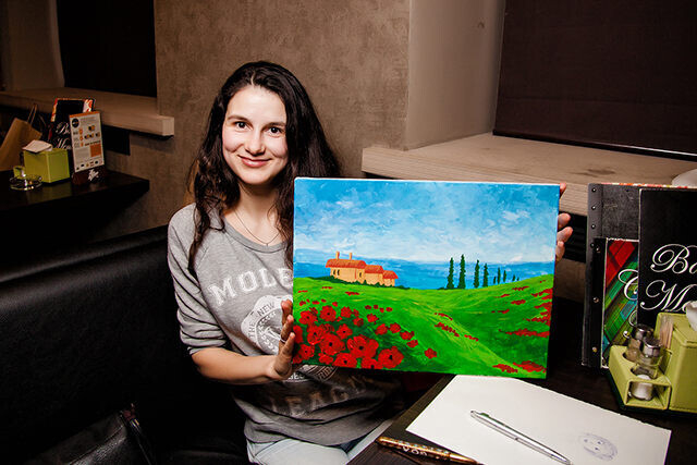 — К сожалению, по такой картине, нарисованной под руководством художника, сложно судить о характере личности человека, ее нарисовавшем. Здесь все же присутствуют моменты «смешайте вот эти краски в такой-то пропорции» и «оставьте для неба 1/3 вашего холста». Задача стоит больше в том, чтобы сделать что-то эстетически красивое и при этом получить удовольствие от процесса. Единственный момент, в котором участники проявили свое творчество, — это маки. Каждый из них мог рисовать их так, как ему захочется.