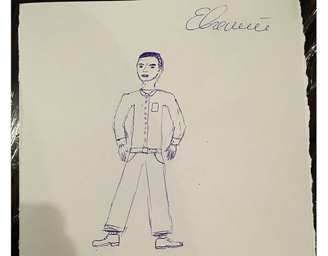 Во-вторых, если говорить об эмоциональных особенностях (на момент проведения эксперимента), то здесь стоит рассматривать нажим на карандаш или ручку. На рисунке Евгения нажим усиленный, что свидетельствует о небольшой эмоциональной напряженности. А большое количество пуговиц — о повышенном самоконтроле, стремлении скрывать от окружающих свои проблемы и переживания.