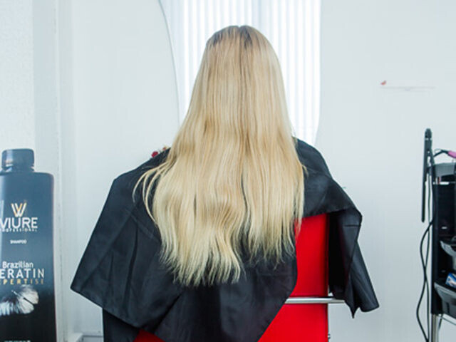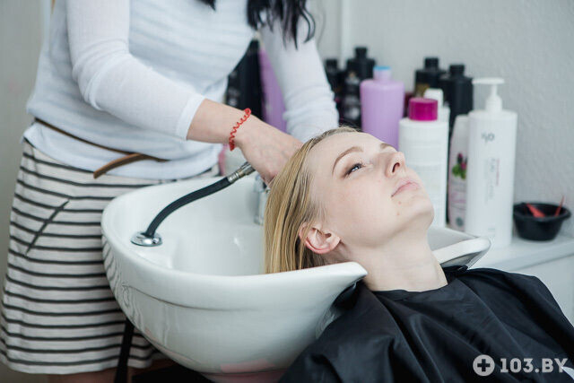 Процедура реконструкции в зависимости от длины волос занимает около часа. Сначала мастер дважды моет голову Карине специальным шампунем.