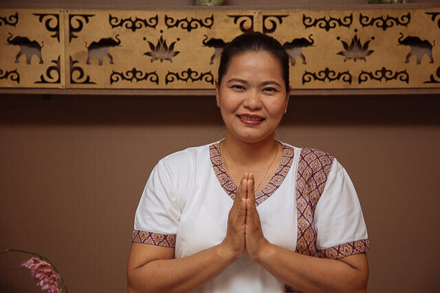 специлист спа-салона «Белый Лотос», 48 лет. Работает в Минске почти год. Начала учиться традиционным тайским ритуалам с 10 лет и продолжает совершенствовать навыки сейчас.