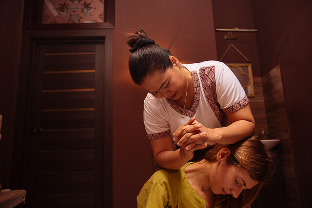 Девушка рассказывает, что зажимы удаляются одним или несколькими методами. Это могут быть растяжка, элементы йоги или физическое воздействие на мышцы. Степень интенсивности процедуры каждый клиент выбирает сам. Специалист относится индивидуально к разным запросам. Он работает в тандеме с клиентом. Вот почему тайский ритуал часто называют пассивной йогой или настоящим танцем.