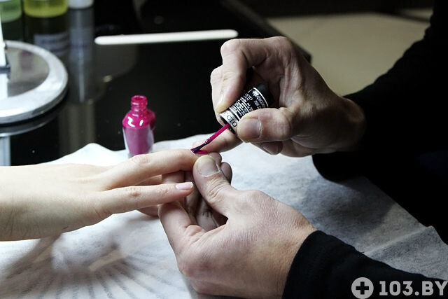 Во время работы, когда мужчина выбрал лак и стал красить девушке ногти, она заметила: «Ой, Вы взяли лак как раз под цвет моей помады». Не отрываясь от дела, мастер улыбнулся и сказал: «Видите, как угадал».
