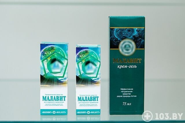 — Водная основа средства позволяет использовать его вместо лосьона. «Малавит» не сушит и не повреждает кожу. В его составе содержится 26 алтайских трав, мумие, серебро, медь, камедь.