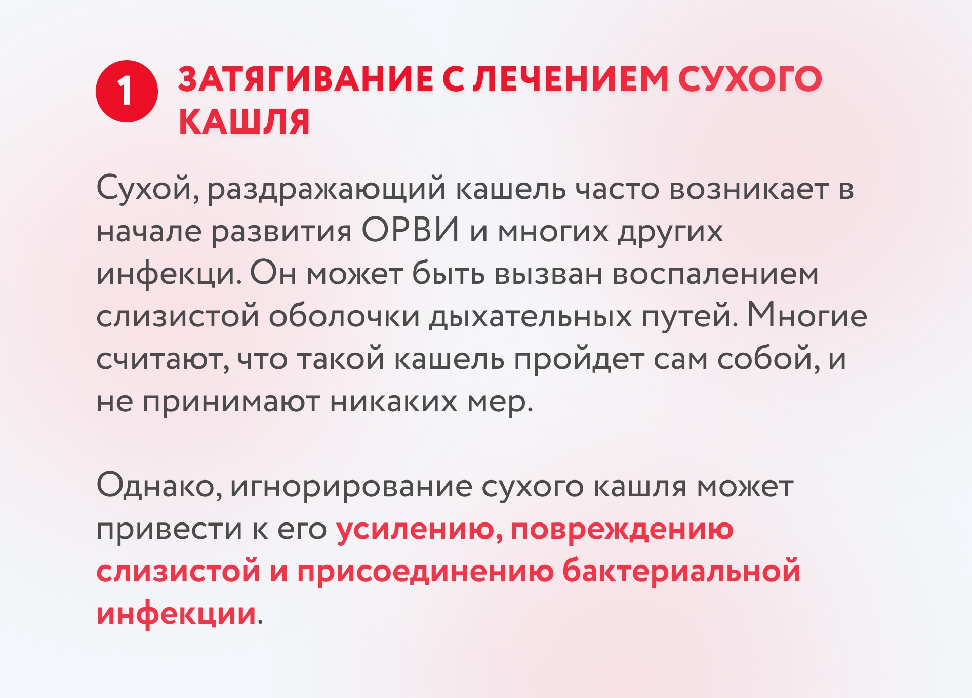 Если верить статистике, более 70% людей при первых признаках кашля прибегают к самолечению. Однако далеко не все методы, которые кажутся эффективными, действительно помогают. В этой статье вместе с врачом-пульмонологом «Центра здорового сна» Натальей Николаевной Кравцовой разбираем самые распространенные ошибки в лечении кашля, которые могут не только не принести облегчения, но и навредить вашему здоровью.