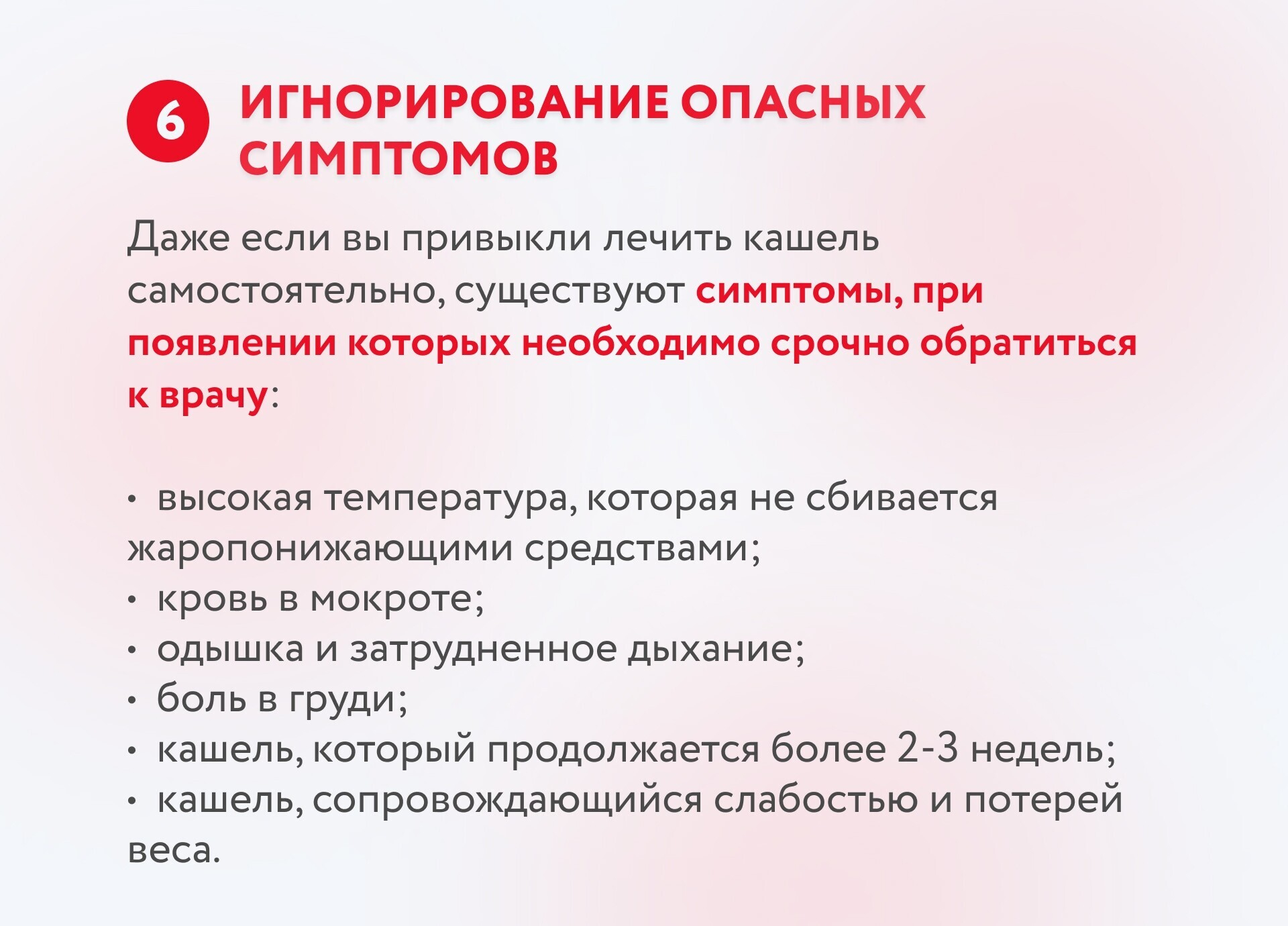 – Если вы обнаружили у себя один или несколько из этих симптомов, либо вас настораживает характер кашля, есть какие-либо необычные проявления со стороны организма, которые его сопровождают (высыпания, крапивница и другие), не затягивайте с визитом к врачу. Ведь все это может говорить о развитии опасных осложнений и состояний.
