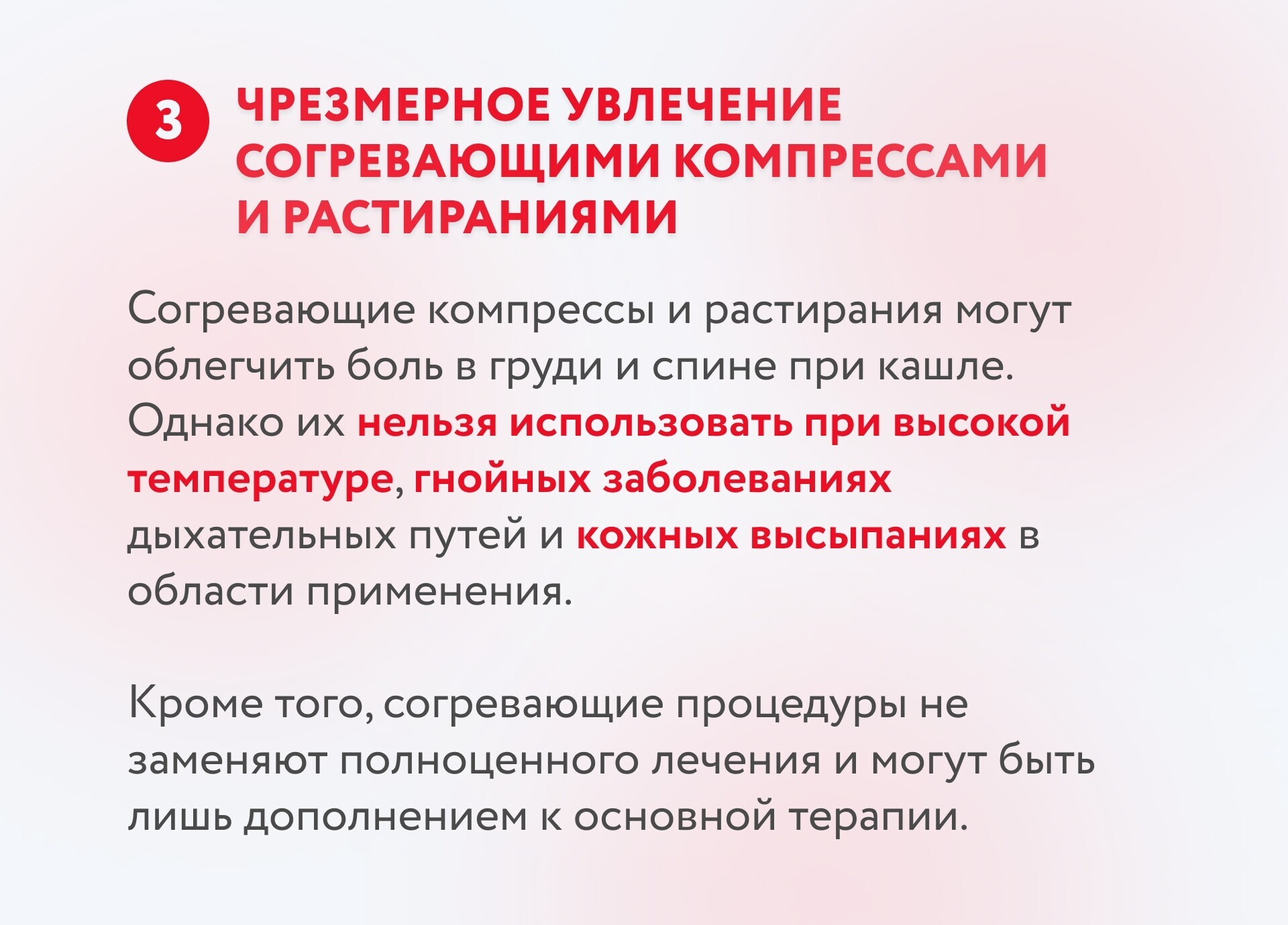 Если верить статистике, более 70% людей при первых признаках кашля прибегают к самолечению. Однако далеко не все методы, которые кажутся эффективными, действительно помогают. В этой статье вместе с врачом-пульмонологом «Центра здорового сна» Натальей Николаевной Кравцовой разбираем самые распространенные ошибки в лечении кашля, которые могут не только не принести облегчения, но и навредить вашему здоровью.