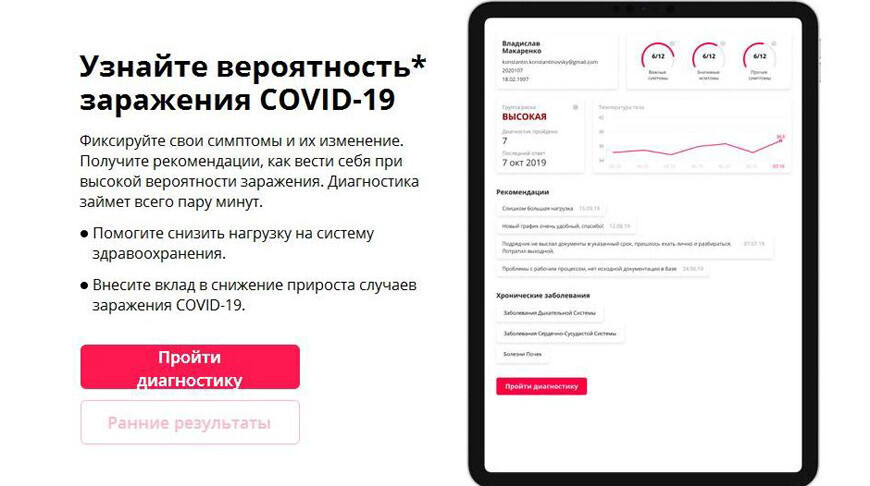 В отличие от существующих в мире трекеров программа разработана для регулярного использования с возможностью отслеживать развитие симптомов во времени.
