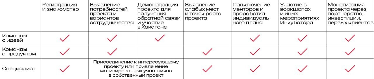 - Команд — (в том числе корпоративных) с идеями, прототипами или продуктами, стремящихся к монетизации.