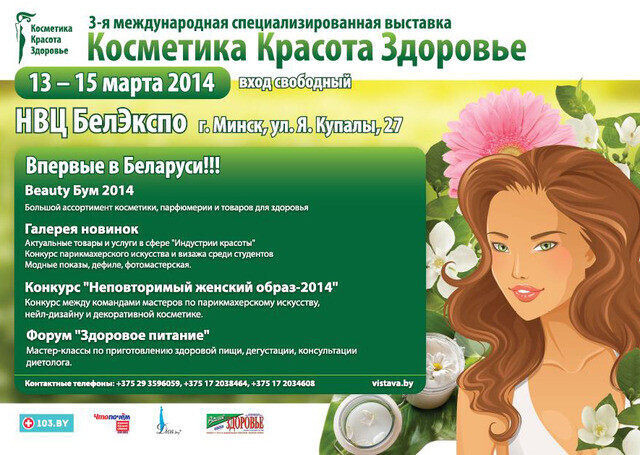 Здоровые новости • В курсе событийВыставка "Косметика. Красота. Здоровье"Автор: 103.by, 03.02.2014Следите за нами в соцсетяхЭффективная реклама на сайте