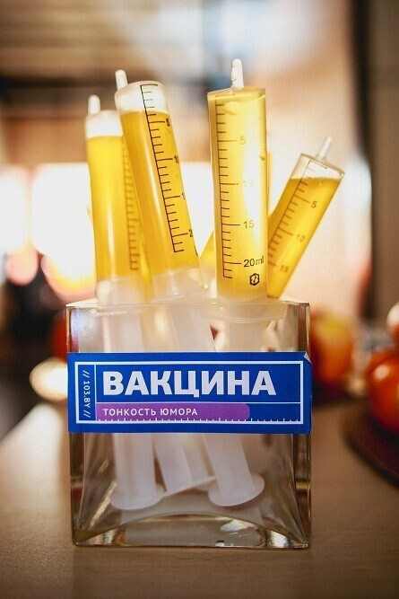 Кстати, коктейлями удивлял не только бармен — для гостей вечеринки был организован, под стать имениннику, самый красивый и здоровый праздничный стол. Тут можно было найти не только коктейль-вакцину для юмора, но и без рецепта получить мензурку с пилюлями для красоты, и даже удивиться нежнейшему вкусу… ватных шариков!