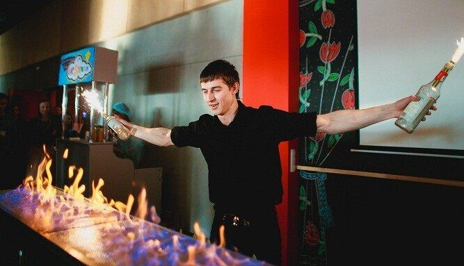 Замерзшие от азота ладошки публика разогревала вместе со следующим гостем. Герой бармен-шоу добавил огонька — не только в переносном смысле.