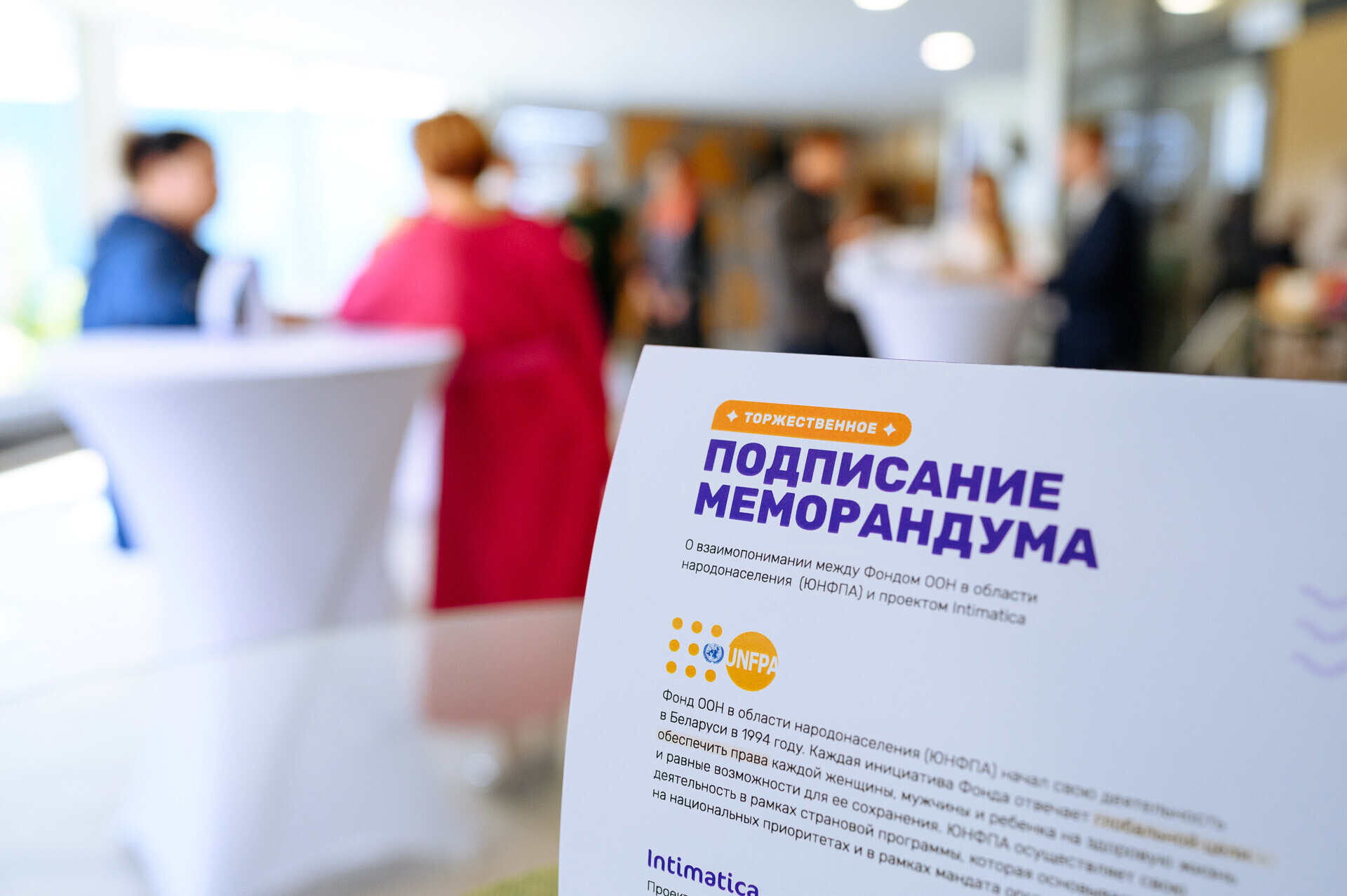 Фонд ООН в области народонаселения (ЮНФПА) подписал Меморандум о взаимопонимании с проектом Intimatica, который помогает подросткам, молодежи и родителям просто и доступно получать достоверные сведения в вопросах репродуктивного здоровья.