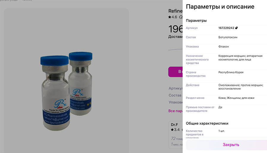 Новостной сайт Tochka.by заметил, что на Wildberries в продаже появился ботулотоксин южнокорейской фирмы Refinex. Колоть его продавец предлагает самостоятельно. Что по этому поводу думают врачи, и как отреагировал сам маркетплейс?