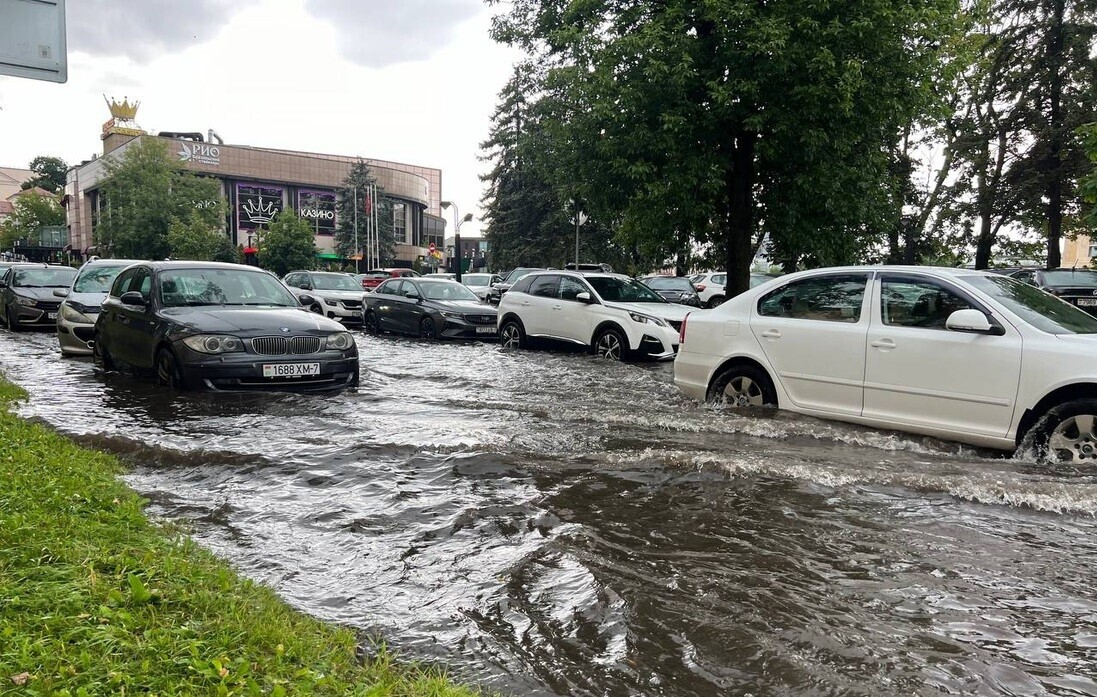 Минск сегодня накрыло сильным ливнем. Затоплены улицы, остановили общественный транспорт.