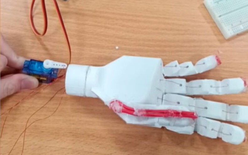 «Рука состоит из каркаса, напечатанного на 3D-принтере, также есть леска, которая соединяет пальцы между собой, и электрические компоненты. Термопривод — это деталь, которая отвечает за механические движения руки, пальцев, есть датчик ЭКГ и сердечного ритма», — рассказала ученица.