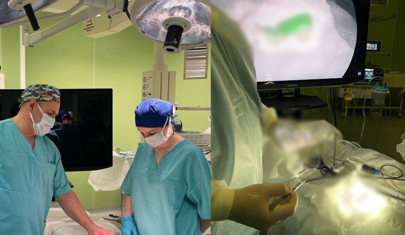 Этот случай стал первым в Беларуси, когда в детской онкологии применили интраоперационную флуоресцентную навигацию. Во время операции врачи использовали специальное вещество — индоцианин зеленый. Оно помогает «подсветить» ткани и увидеть возможные очаги болезни.