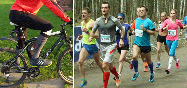 При интенсивных физических упражнениях возрастает количество крови, которое проходит по сосудам в единицу времени. Вены не всегда справляются с такой повышенной нагрузкой, часть жидкости застаивается, и возникают отеки ног. Прямой эффект компрессии – предотвращение отеков ног – особенно важен в спорте. При применении компрессионных гольфов спортсмены – особенно бегуны на длинные дистанции – сразу замечают уменьшение отеков и болей в ногах.