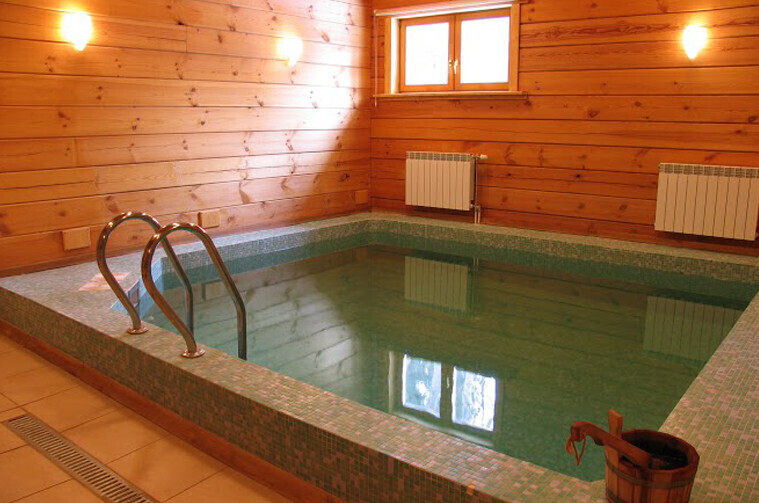 , который состоит из 10 двухместных и 2 четырехместных домиков, возле которых располагаются беседки и русские бани. «Чароуная лазня», «Пар над ярам», «Моцны пар» — все бани топятся только дровами.