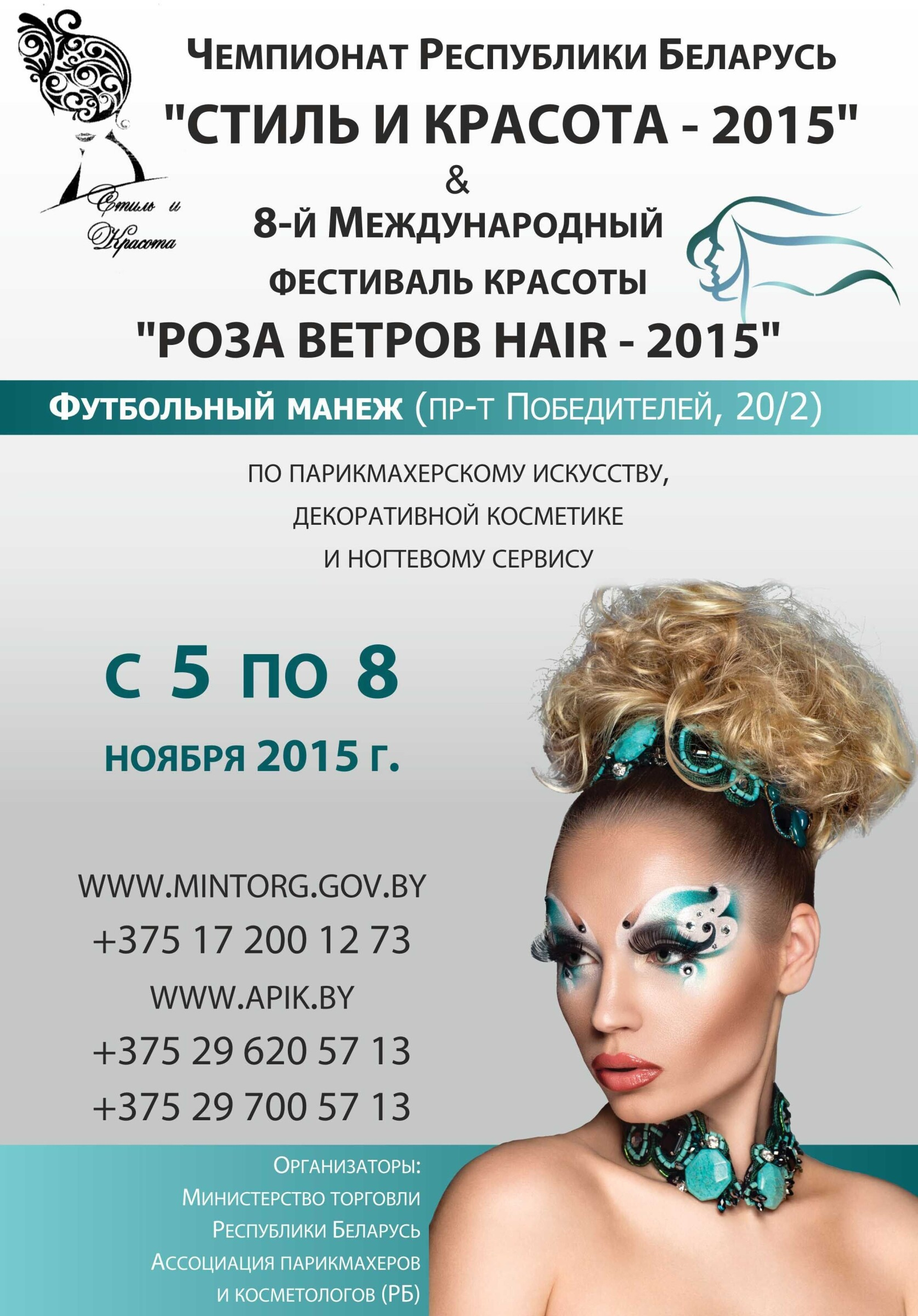 С 6 по 8 ноября 2015 года в рамках XIV Международной специализированной выставки-ярмарки «ИнтерСтиль–2015» состоится крупнейший профессиональный праздник парикмахерской подотрасли — чемпионат Республики Беларусь «Стиль и красота–2015» и VIII-ой Международный фестиваль красоты «РОЗА ВЕТРОВ HAIR-2015» по парикмахерскому искусству, декоративной косметике и ногтевому сервису.