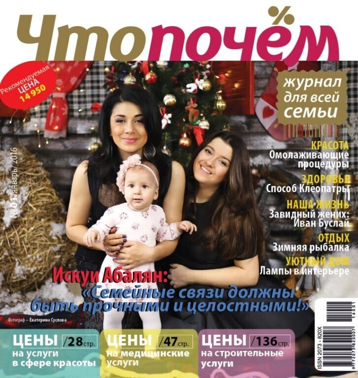 На обложке январского номера – известная белорусская певица, обаятельная женщина и счастливая мама Искуи Абалян с дочками.