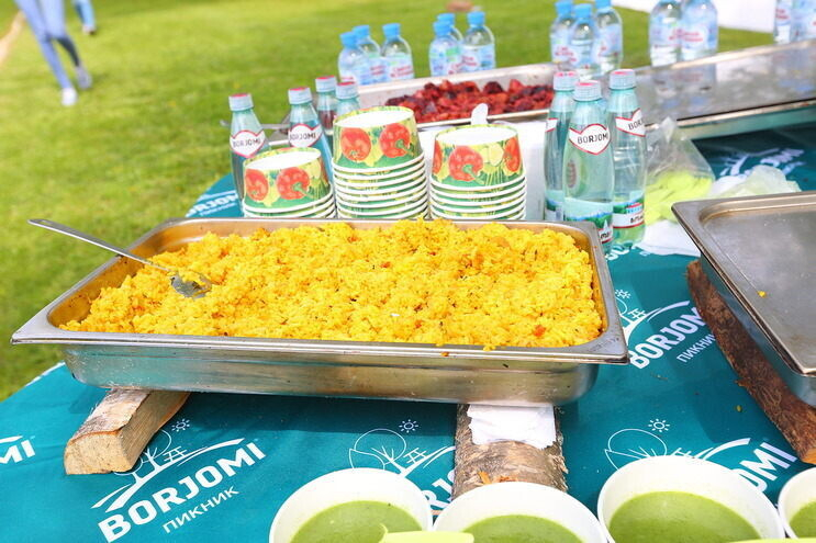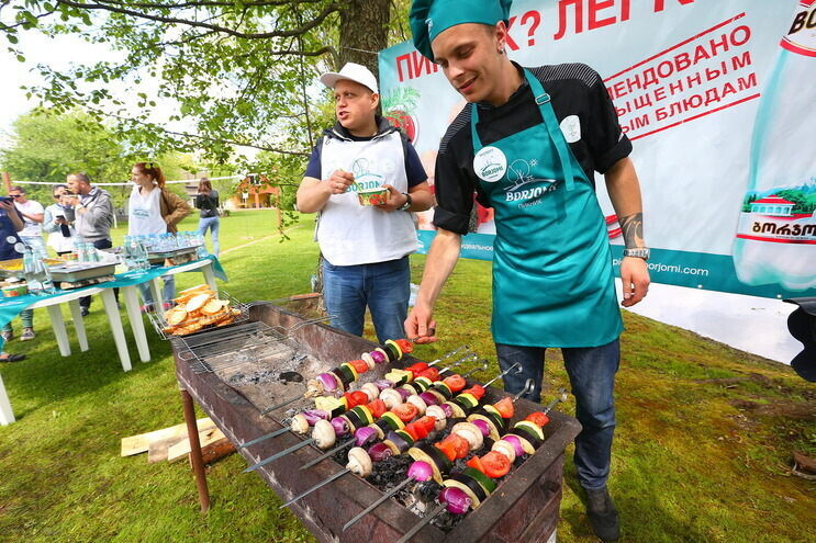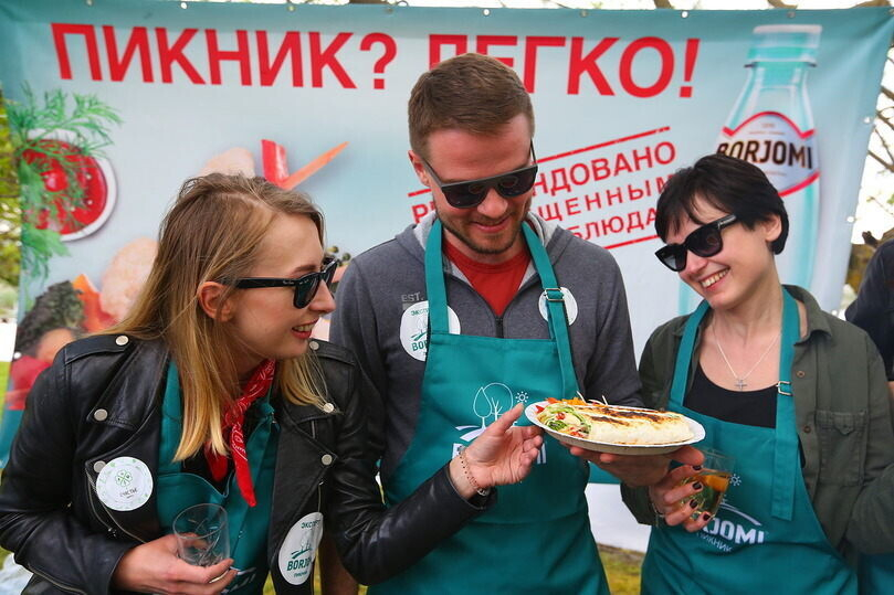 «Обойтись без насыщенных блюд на пикнике никак нельзя, — говорит Алексей Жуйков, шеф-повар вегетарианского кафе. — Но ведь насыщенная еда — это не только мясо. Сегодня я готовлю блюда различных кухонь, острые и вкусные. В качестве напитка к ним я рекомендую «Боржоми», воду, которая нивелирует нежелательные последствия тяжелой пищи, даже если она остро-вегетарианская. Я уверен, что после сегодняшнего пикника многие поймут, что еда без мяса — это не ограничение, а возможность поэкспериментировать и пофантазировать».