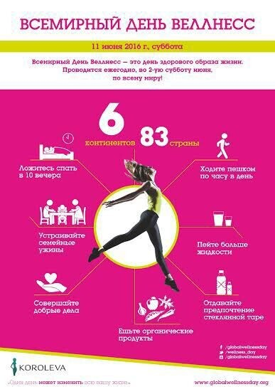 - Разместить информацию о поддержке Всемирного Дня Велнес на сайте вашего спа- / велнес-центра, санатория, кафе и пр.