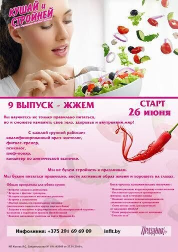 Ольга Лелюкова +375 29 677 86 38 (куратор проекта «Кушай и стройней»)