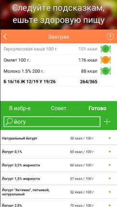 В приложении довольно большой список категорий еды: «Кондитерские изделия», «Крупы и злаки», «Алкогольные напитки», «Овощи и зелень» и др. – так что вы можете быть уверены, что ваш рацион будет проанализирован до последней крошки.