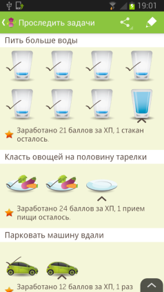 «Мой тренер» будет вас действительно тренировать, подкидывая задачи вроде «пройти 5000 метров», «не есть перед телевизором», «выпить 6 стаканов воды за день». И все это будет разбавляться мотивирующими цитатами и шутками. За каждое выполненное задание вы получаете баллы, которые можно потратить на обновки для своего аватара.