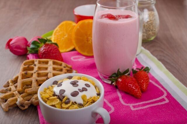 Многие считают, что фруктовый сок для ребенка за завтраком — это отличное начало дня. Но и тут диетолог предупреждает — в стакане сока из пакета снова притаился сахар, аж 5-6 чайных ложек. Кроме того, у многих детей сегодня наблюдаются гастриты. В этом случае сок на голодный желудок вообще противопоказан. Кислая среда агрессивно влияет на стенки желудка. Так что лучший вариант — свежевыжатый сок, еще лучше — смузи. И поменьше газировки, ребенку лучше выпить обычной воды или чая желательно без сахара или с минимальным его количеством.