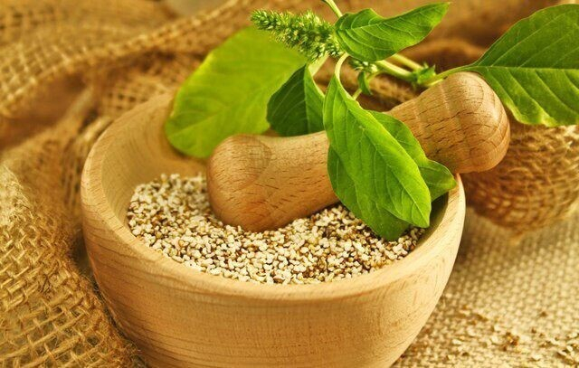 Амарант содержит мощнейший антиоксидант сквален, который замедляет процессы старения и препятствует образованию различных воспалительных процессов. Крупа не содержит глютена, в ней много кальция, калия, железа, магния и фосфора. А также белка и витаминов, особенно богат витамином Е. Иногда врачи включают эту крупу в лечебную диету.