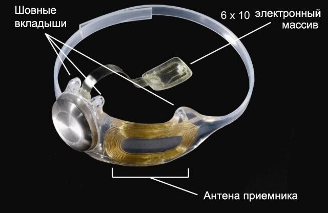 «Бионический глаз» состоит из трех компонентов — киберсетчатки (включает в себя 60 электродов), специальных очков со встроенными камерами и специального карманного компьютера, который преобразует сигналы и отправляет их в мозг. Эта разработка позволяет слепым людям видеть черные, белые линии и крупные буквы и слова.