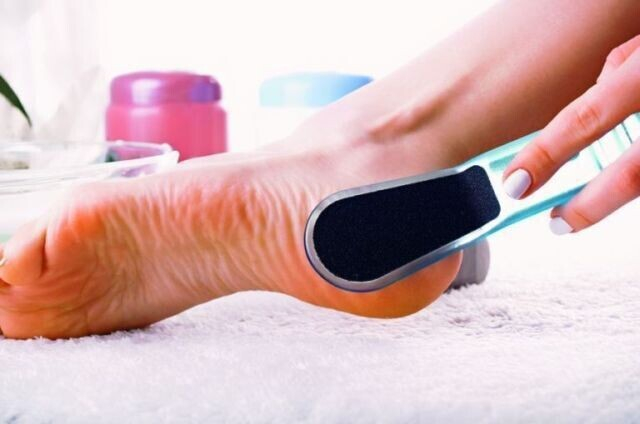 У вас обязательно должны быть несколько инструментов для ухода за кожей стоп — мягкая пемза, пилочка для пяток, щетка для ног.