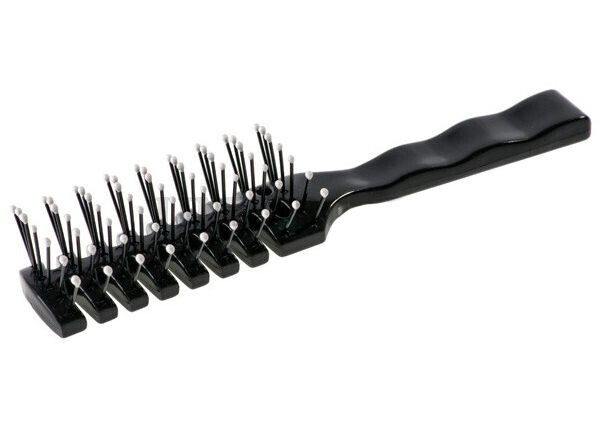 Расческа с выпуклым основанием и 7-9 рядами зубчиков. Из-за полукруглого основания зубья располагаются на значительном расстоянии друг от друга. Такой инструмент помогает в укладке коротких и средних стрижек — типа боба и каре, —подходит для вытягивания и подкручивания челки, массирует кожу головы. Ее легко чистить из-за того, что зубцы расположены достаточно далеко друг от друга. Минусы: если зубчики выполнены из пластмассы, шевелюра электризуется.