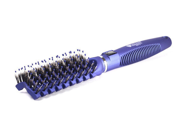 Плоская щетка с горизонтальными отверстиями, через которые горячий воздух от фена свободно циркулирует, не обжигая кожу и не перегревая волосы. Подходит для начесов и создания объема у корней. Минус в том, что могут загрязняться не только зубчики, но и отверстия, которые неудобно чистить.