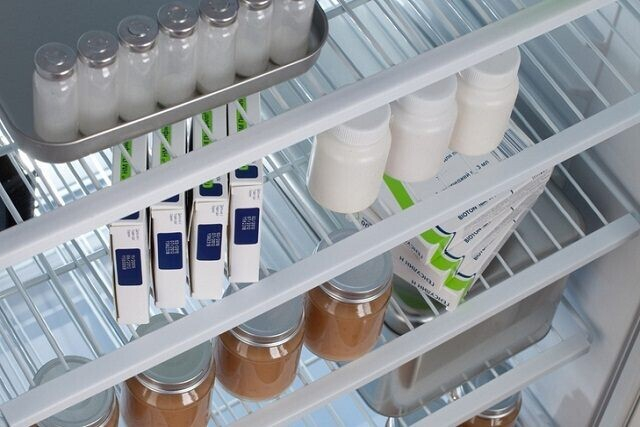 Хранение в холодильнике необходимо лишь для некоторых препаратов. Как правило, в инструкции к ним написано «хранить в сухом прохладном месте». К подобным средствам относятся почти все глазные капли, некоторые препараты для ушей, свечи-суппозитории, мази, препараты на основе интерферона, вакцины, некоторые препараты с бифидокультурами и инсулин. Идеальным считается, если температура держится в пределах 2-8 °С тепла.