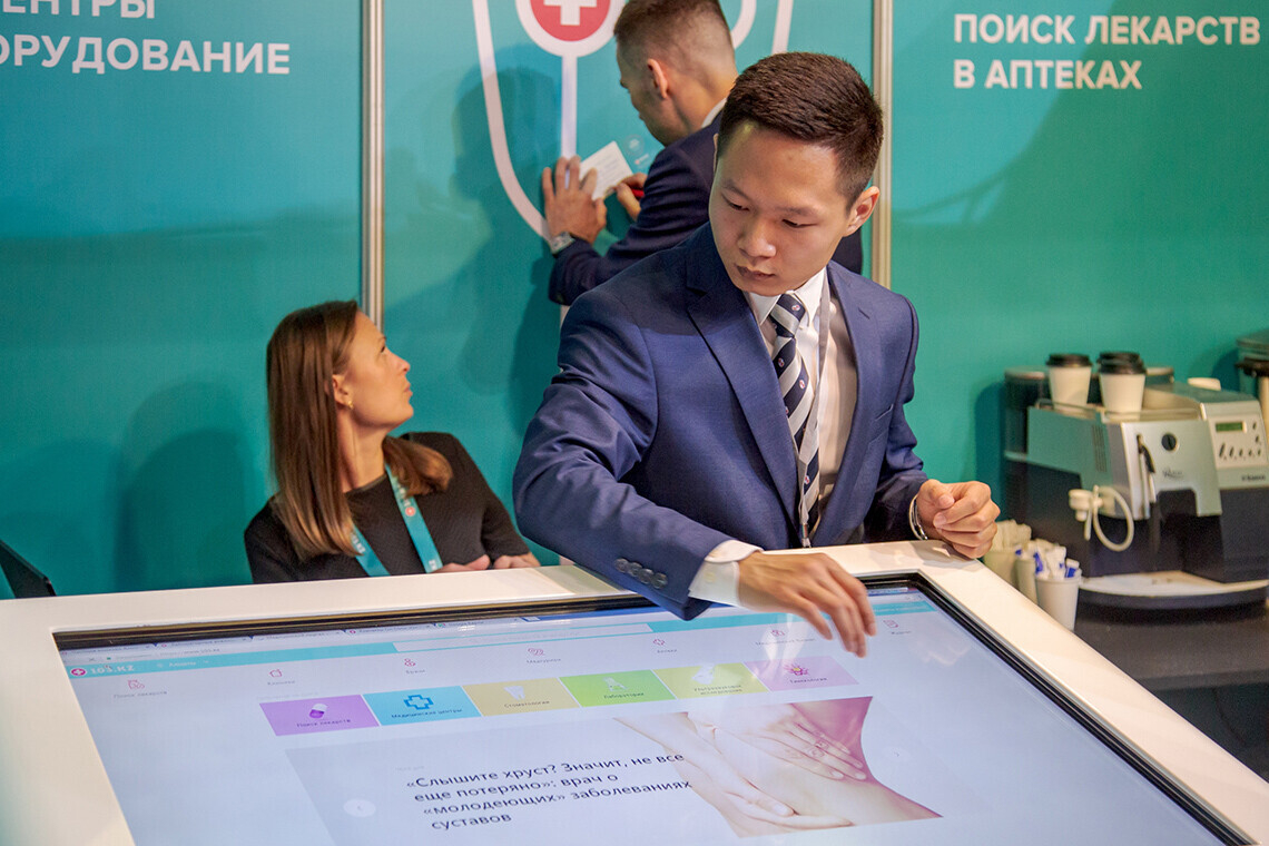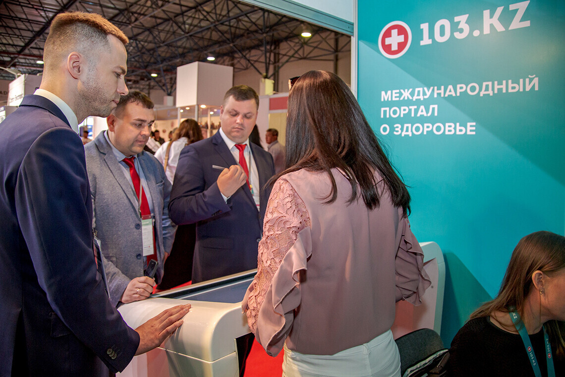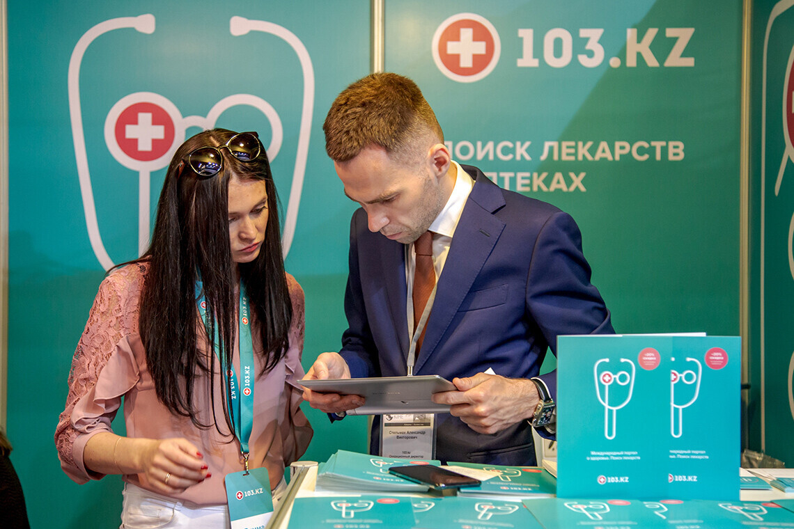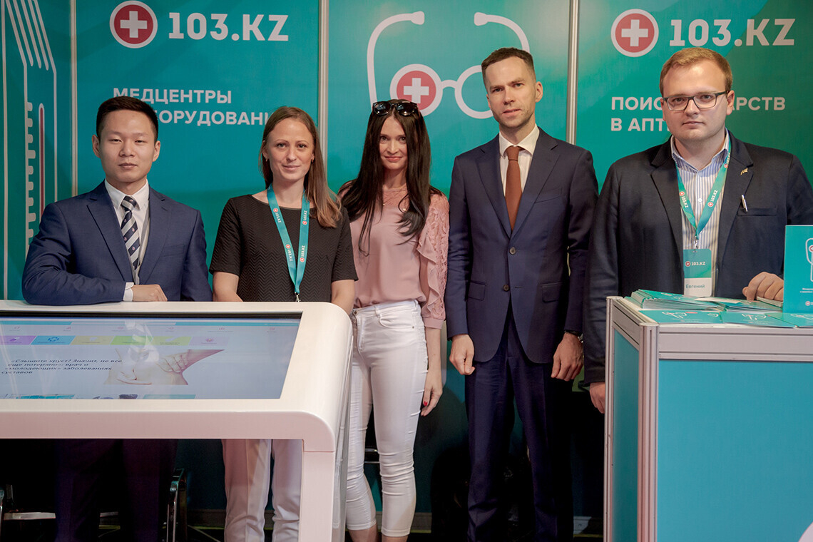 Портал 103.kz представляли 5 человек. Среди гостей стенда были доктора, директора медицинских центров и B2B-специалисты. Некоторые заходили на сайт прямо со своих смартфонов и интересовались разделами «медицинские центры».