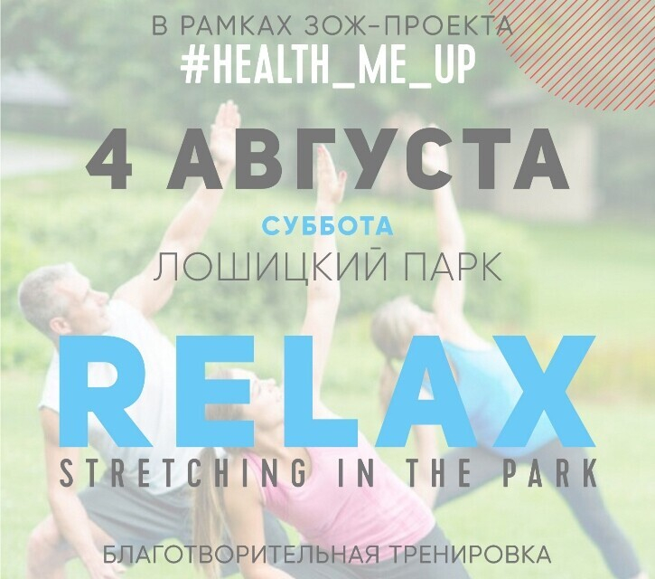 В рамках ЗОЖ-проекта #Health_Me_Up в Минске пройдет серия благотворительных тренировок на свежем воздухе по Relax-стретчингу. Занятия будут проходить на свежем воздухе. О том, где состоится первый урок и что необходимо взять с собой, — в материале.