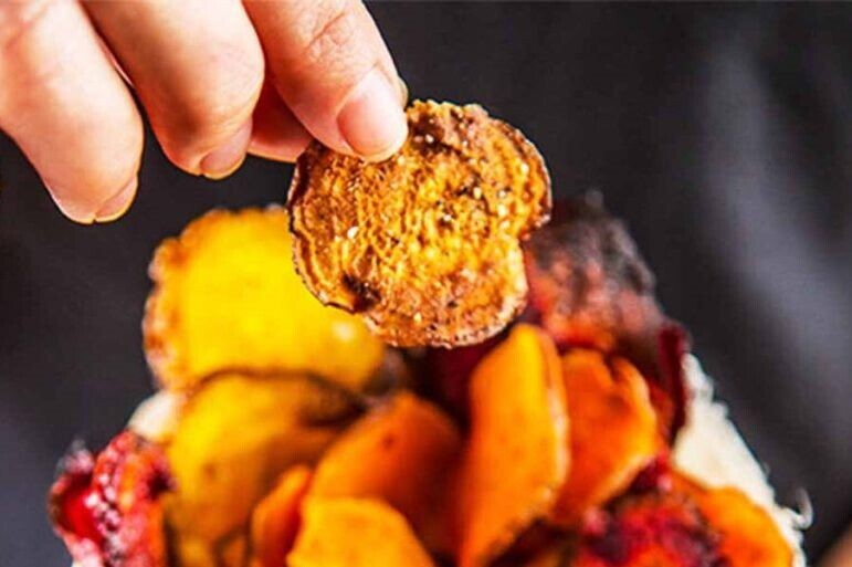 В таких снеках будет много бета-каротина, полезного для иммунитета и зрения. Чипсы получатся яркими и будут иметь сладковатый привкус. В блюдо можно добавить корицу, мускатный орех и столовую ложку апельсинового сока.
