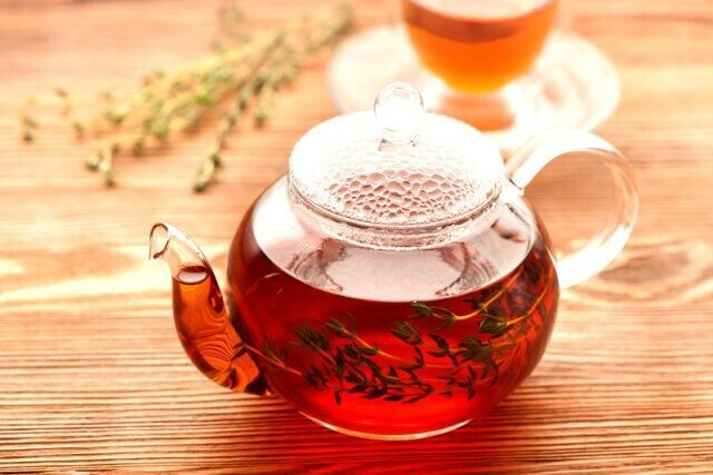 Прекрасно тонизирует. В предварительно прогретый заварочный чайник насыпьте 1 ч. л. черного чая и 1 ч. л. тимьяна. Залейте стаканом кипятка. Дайте настояться. Добавьте по вкусу корицу, лимон, мед или имбирь.
